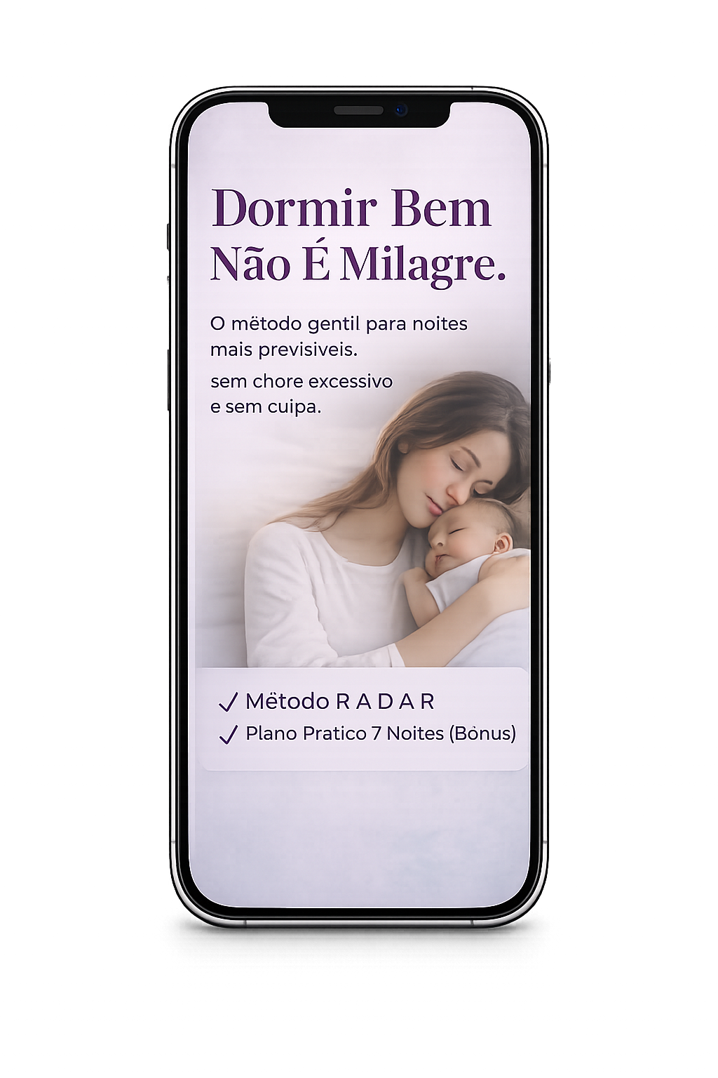 O guia não promete noites perfeitas, mas ajuda você a reduzir tentativas aleatórias, criar mais previsibilidade e atravessar essa fase com mais tranquilidade.